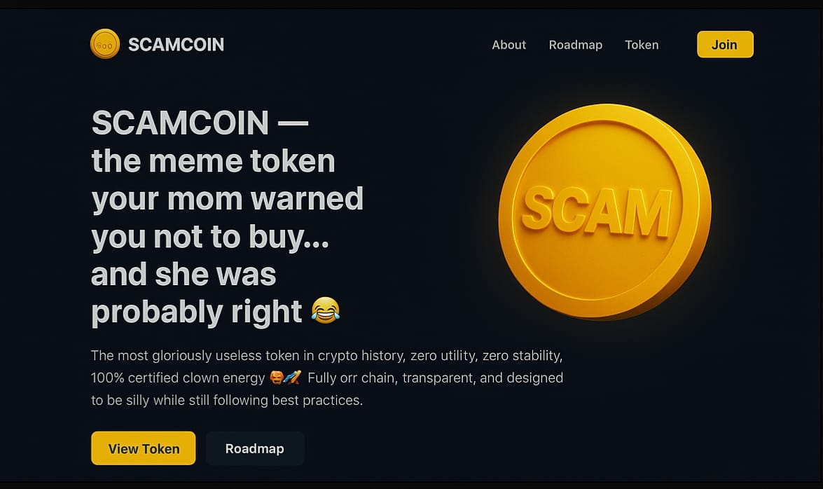 SCAMCOIN — the meme token your mom warned you not to buy… and she was probably right ?